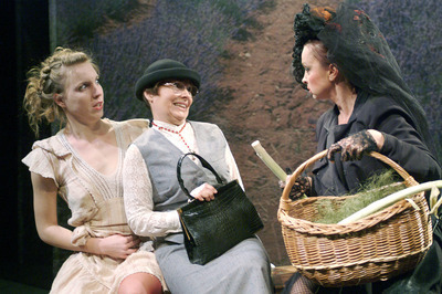 A darab egy kicsi francia falu padján játszódik, a természet idilli, lágy ölén, az „összes út kereszteződésében", a három hölgy - az Özvegy, a Liba és a Szent - részvételével.